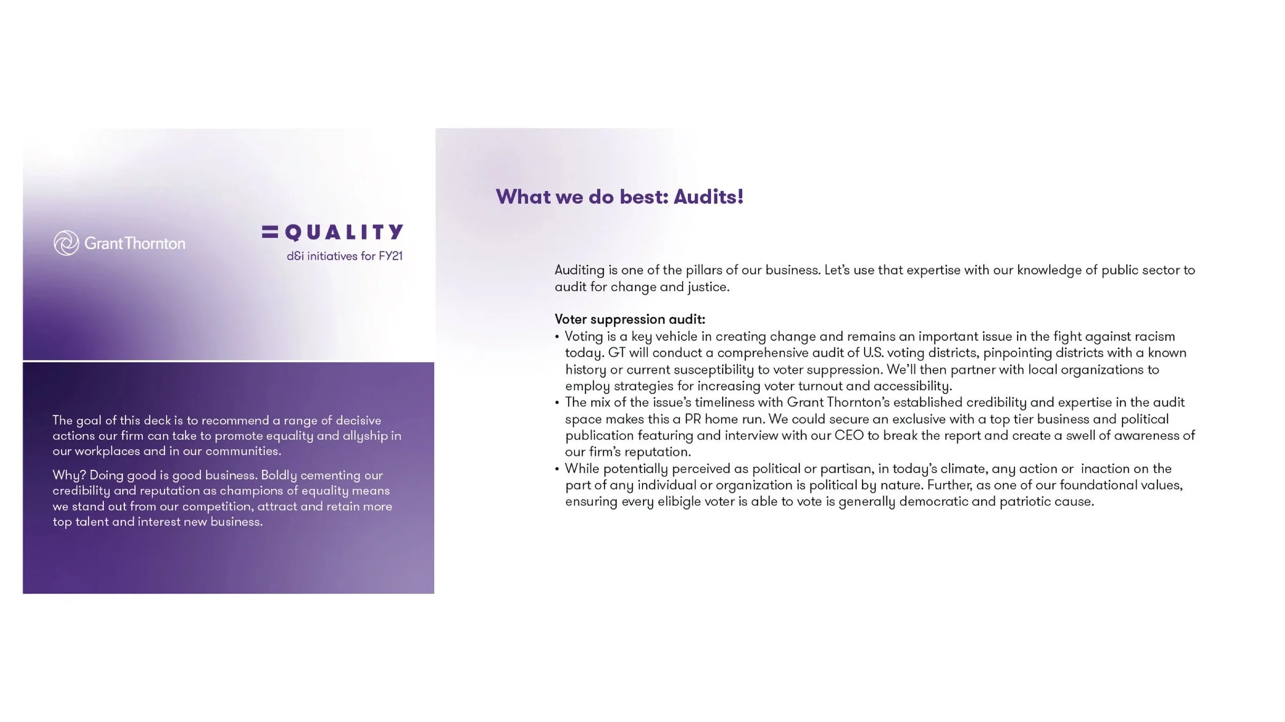 Some of the work I’m most proud of is related to our diversity, equity, and inclusion functions. On top of sitting in a leadership position in our DE&I Council, I also developed a suite of recommendations for our company to improve its DE&I functioning both in terms of its internal processes and its impact on the communities it serves.