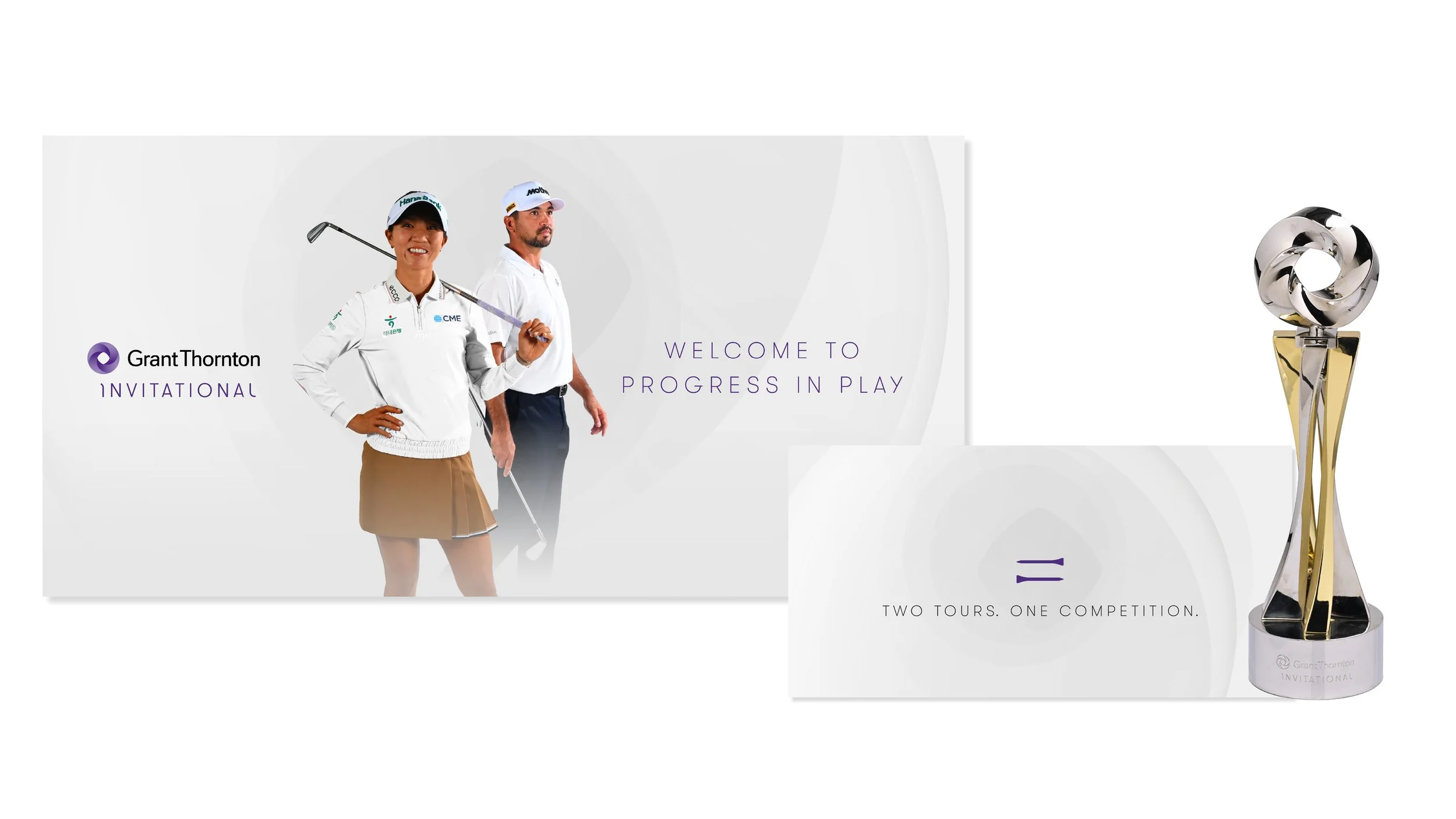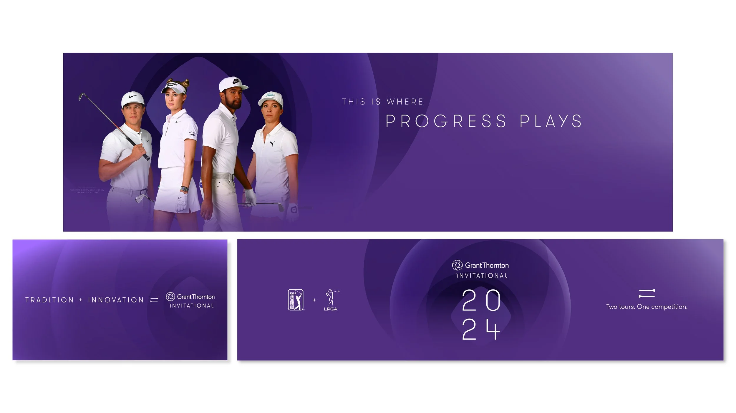A main focus of my work at Grant Thornton is leading our sponsorship marketing creative, primarily in the golf space. This work involves visual identity development, design execution, and art directing in-house and agency designers. I’m also the creative lead for the Grant Thornton Invitational, the firm'’s largest marketing investment and highest-visibility program. My favorite aspect is the tournament icon I designed for it: an equals sign made of golf tees to signify the pay parity enjoyed by our male and female golfers. The “pair of tees” is a visual representation of parity. This visual identity was long-listed by the Cannes Lion Awards.